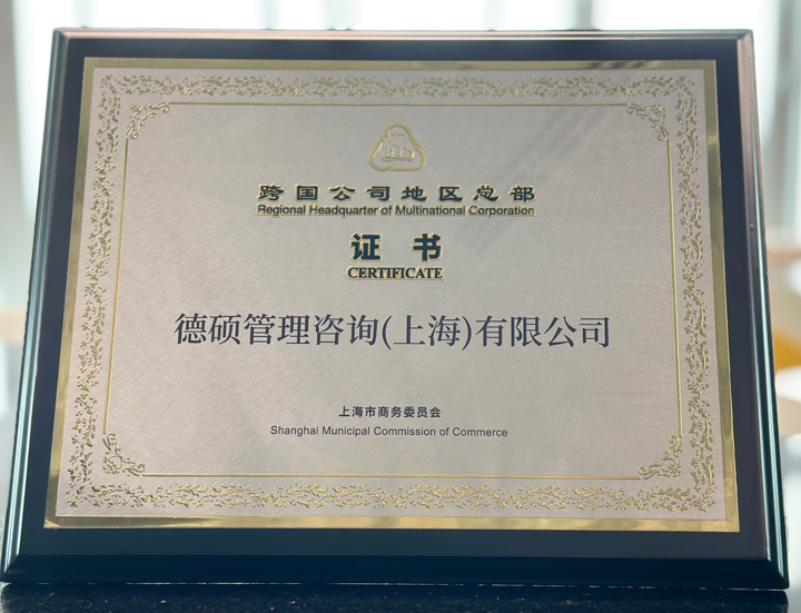 德硕管理咨询(上海)有限公司作为深耕中国市场20余年的跨国咨询企业代表获颁“上海市跨国公司地区总部”证书。曾寒先生在仪式上表示:“2003年,ABeam把握中国加入世贸组织的历史机遇,并结合上海作为中国核心城市之一的地位,将地区总部设立在上海这座充满活力的国际大都市。20年来,我们见证并参与了中国经济的腾飞,公司员工规模大幅上涨,在华团队已突破1100人。”